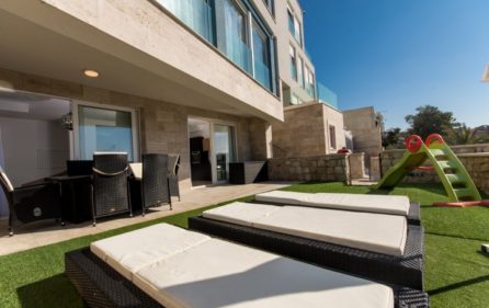 This amazing villa offers accommodation for up to 8 people. It consists of 3 bedrooms with hangers, wardrobes, working desk, sitting area. There is a living room with a Flat screen TV and sofa. There is a fully equipped kitchen with an oven, toaster, stove, water kettle, microwave, refrigerator, coffee maker, dishwasher and kitchenware. Highchair and baby cot are also provided. There are 4 bathrooms that feature showers, hairdryer, and toiletries, and two of them feature a bathtub, and a washing machine is provided. The amazing terrace and balcony with outdoor furniture and barbecue area have a shared swimming pool surrounded by sunbeds and offering a beautiful sea view. It is a perfect place to relax. The villa offers air-conditioning through the whole object, free Wi-Fi, private secured parking for guests, cleaning necessities and iron facilities.