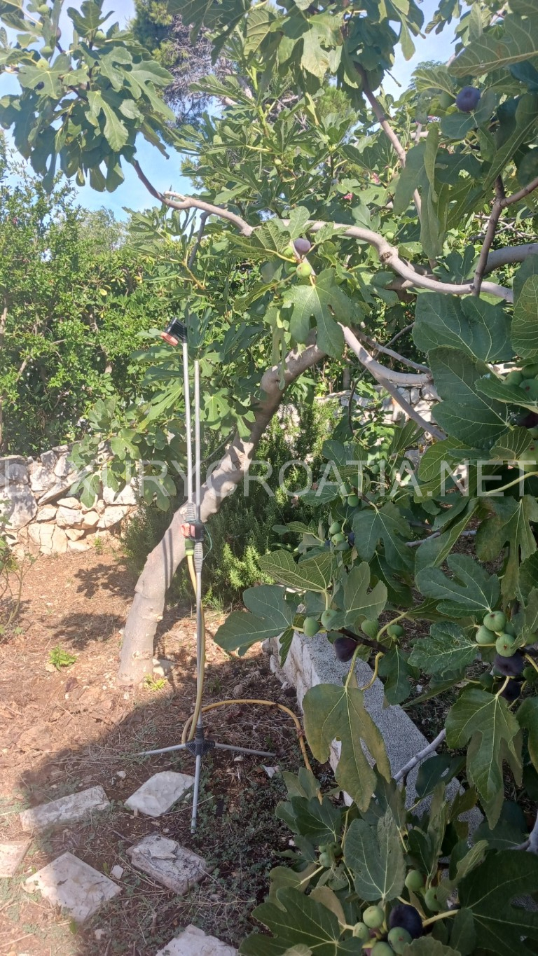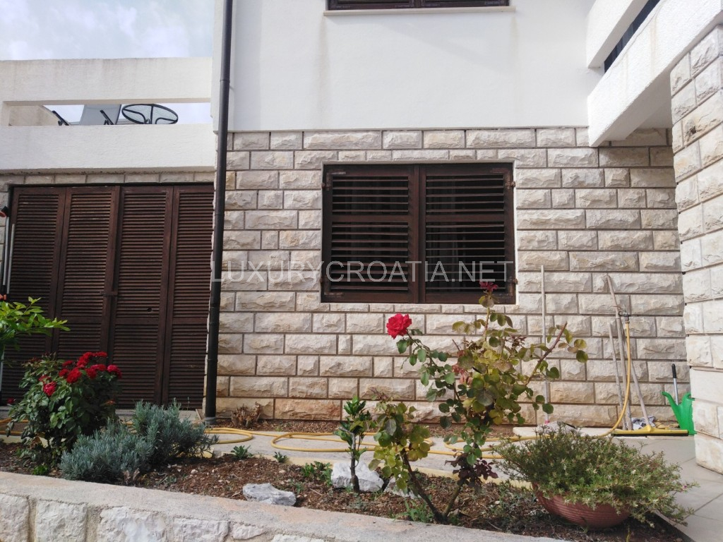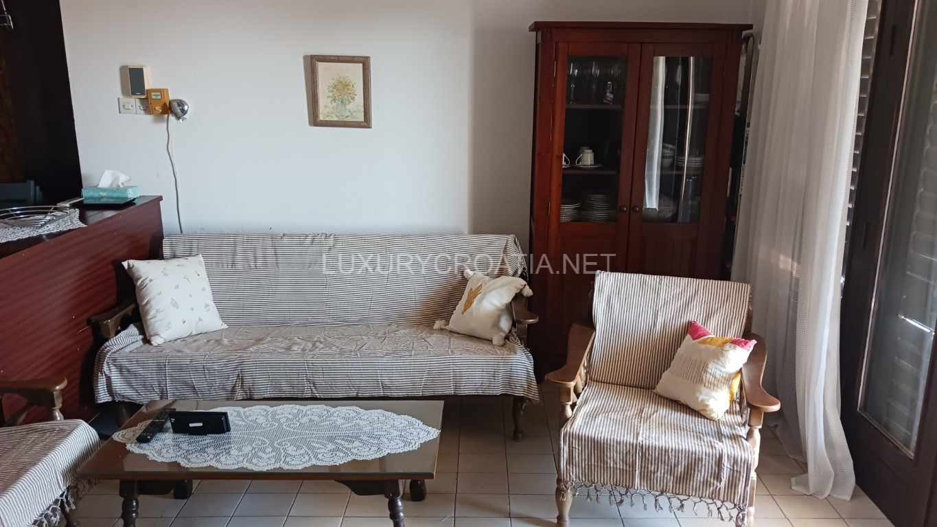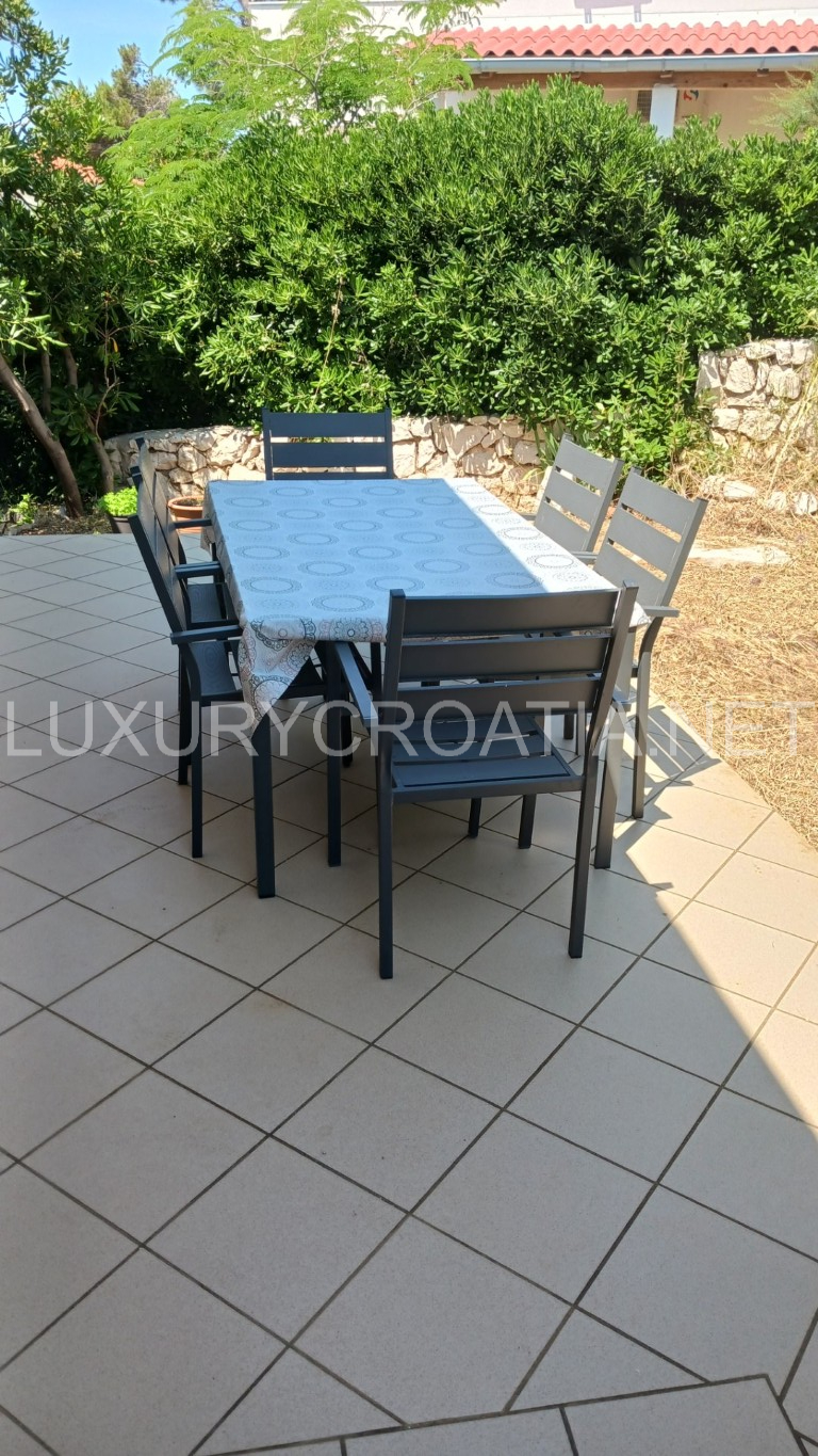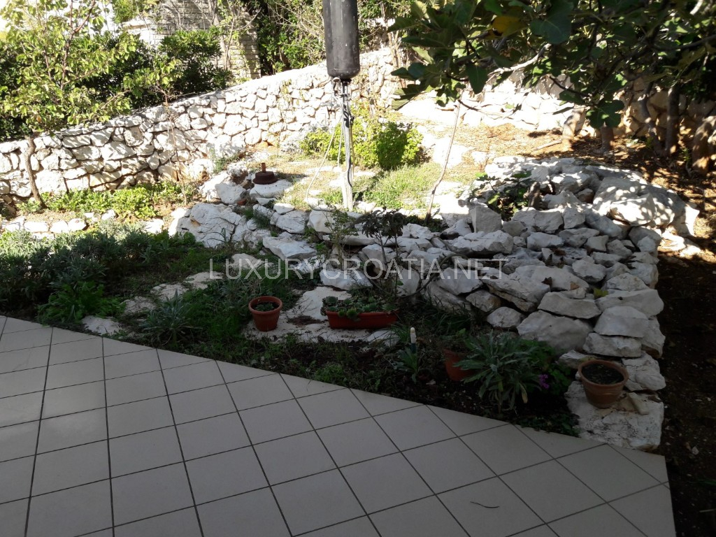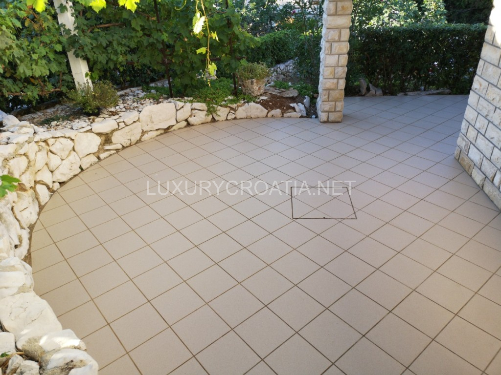 This is a detached family holiday home with two residential units, on two floors, living space of 105 m2, with electricity, water and high-speed internet access. The plot of 445 m2 is surrounded by a stone wall, with space for parking at least three cars, and several garden cascades with pomegranate, fig, almond, laurel trees.