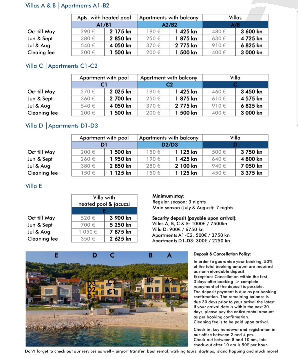 Villas A, B, C & E: 1000€